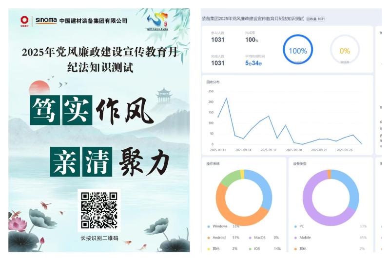 突出“以考促學、以學促用”,裝備集團紀委組織開展紀法知識答題活動,內容涵蓋中央八項規定及其實施細則精神、《中國共產黨紀律處分條例》等,從理論認知到實際運用,多角度考察黨員干部對黨規黨紀核心要點的理解與掌握,1000多名黨員干部參與了線上答題活動,進一步檢驗黨員干部理論學習的實效和成果。